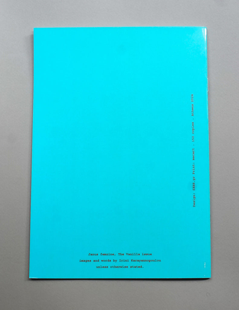 In the 70s there were two magazines named Janus. One focused on poetry and science fiction, by a group of feminists, the second Janus was London based and had erotic, s&m content. Irini Karayannopoulou was inspired by both of these publications to create her own Janus, a self-published edition in 150 copies, challenging and commenting on the stereotypical notions surrounding femininity, sexuality and its roles.